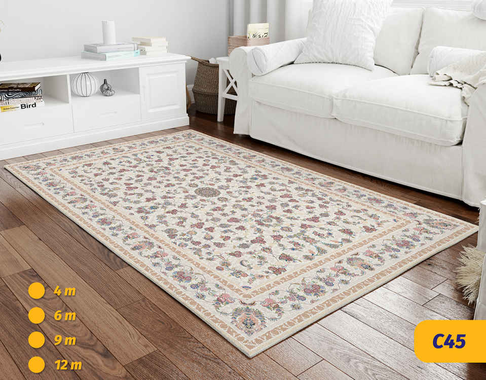 روفرشی های سه بعدی مخمل شانل کارینا با پارچه لطیف که با نخ سوپر برایت وارداتی بافته شده و در کشور عزیزمان عملیات تکمیل آن صورت پذیرفته، تولید می گردد. هم چنین در چاپ آن از بروزترین دستگاه ها و تکنولوژی کشور آلمان استفاده شده که باعث وضوح تصویر بسیار بالا در چاپ می شود. همچنین دارای 5 سانتیمتر ابعاد بزرگ تر بمنظور پوشش بهتر فرش می باشد.